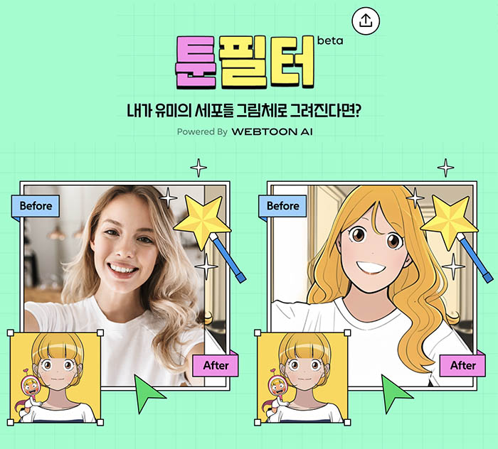 네이버 웹툰에서 자신의 얼굴을 웹툰 캐릭터 이미지로 바꿔주는 툰필터를 출시했습니다.